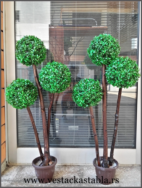 Derkoracija privatnog ili poslovnog prostora je danas gotovo nezamisliva bez biljaka ili cvetnih aranžmana. Prirodno ili veštačko bilje je stvar izbora i ličnih afiniteta i svako ima svojih prednosti. Veštačko drveće se danas pravi od jako kvalitetnih materijala, lako je održivo i zbog toga je sve više zastupljeno u dekorisanju Vašeg doma ili poslovnog prostora. Na ovoj stranici možete pogledati „Veštačka stabla“ koja smo napravili, a po želji svakog našeg kupca, možemo ih napraviti u različitim veličinama i oblicima kako bi ih na najbolji način uklopili u Vaš ambijent.
